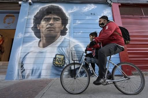 El capitán de la selección argentina, campeón mundial en 1986, falleció el 25 de noviembre de 2020 de un infarto solo en una residencia de Tigre, al norte de Buenos Aires. (Foto de Juan MABROMATA / AFP)