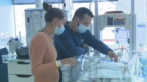 En el Montreal Children’s Hospital, un bebé con un virus respiratorio ocupa la mayoría de las camas de cuidados intensivos.
