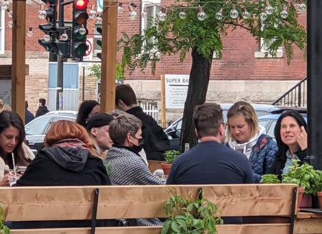 Las normas sanitarias son evidentes en la zona roja, como en Montreal: un máximo de dos personas con hijos menores u ocupantes de la misma residencia pueden sentarse juntas en el balcón de un restaurante desde el viernes, inicio del desmantelamiento.