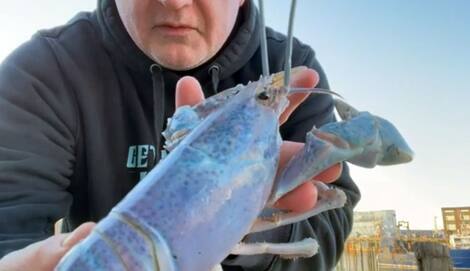 Haddie, una langosta del color del algodón de azúcar, fue capturada en Maine esta semana. A diferencia de la langosta marrón normal, el Haddie tiene tonos azules y rosados que brillan en su caparazón.