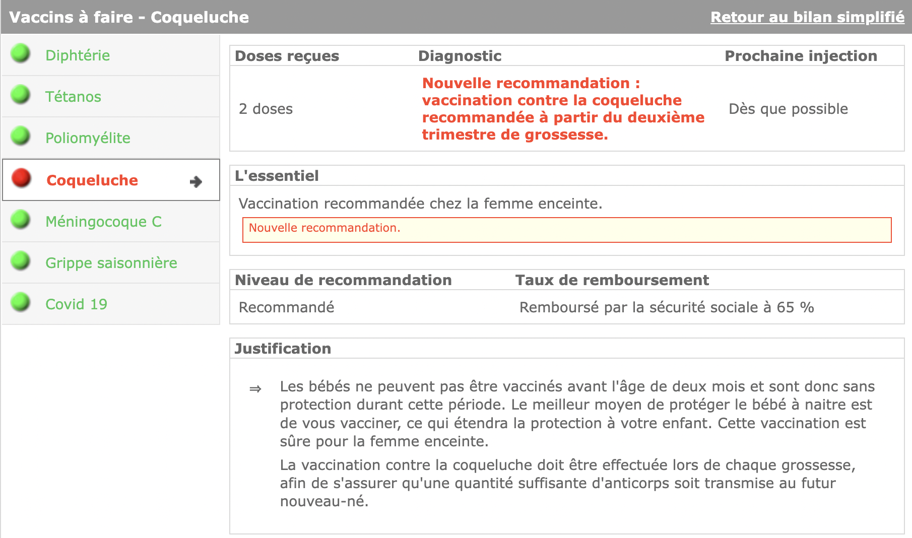 Esta nueva recomendación se incorporó al Sistema de Apoyo a la Decisión de Vacunación MesVaccins y al Registro Electrónico de Vacunación (fig. 1).