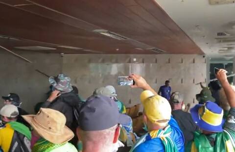 Una auténtica oleada humana de manifestantes vestidos de amarillo y verde ha asaltado y saqueado los principales lugares de poder del país en Brasilia. AFP indicó que la policía quedó completamente abrumada por impresionantes imágenes que recuerdan la invasión del Capitolio en Washington por parte de partidarios del expresidente Donald Trump en enero de 2021. Imágenes de CNN Brasil mostraban a soldados con uniformes amarillos y verdes descendiendo en fila india. Con las manos a la espalda, la rampa del palacio presidencial Planalto, rodeado de policías.