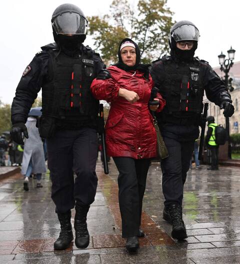 «¡No somos carne de cañón!», gritó una joven. Mientras la policía con cascos antidisturbios la arrastraba. Este es uno de los lemas de los manifestantes que se oponen al envío de rusos movilizados a Ucrania.