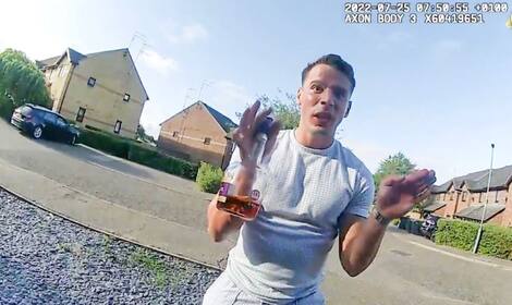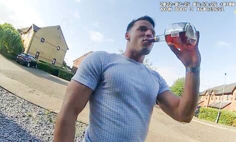 Horas más tarde, la cámara corporal que llevaba un agente de Essex que observaba la escena del crimen registró al Sr. Hecko mientras regresaba ebrio al vecindario.