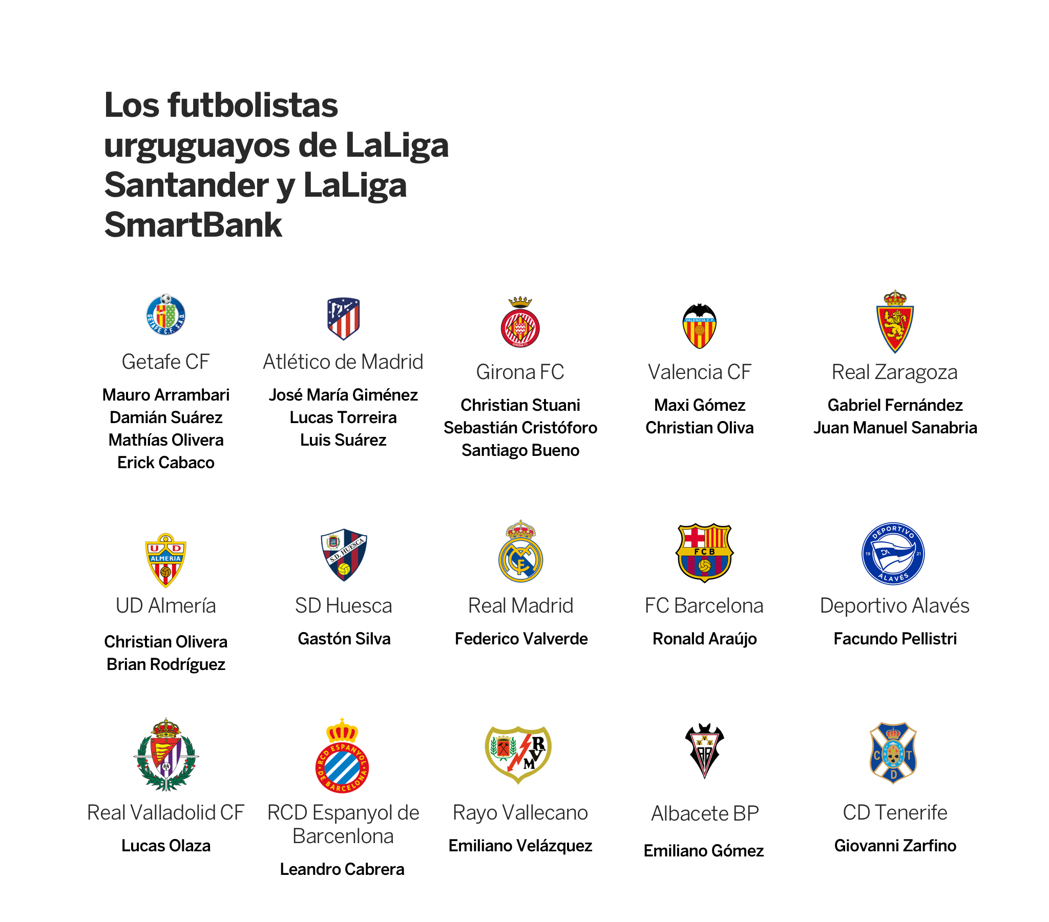 En España, hicieron más que eso. Se sienten como en casa. Su alma y su firma encontraron una competencia que históricamente ha acogido a muchos latinoamericanos. Ganaron cada uno de los equipos en los que participaron y se pusieron en los ojos de todo el planeta gracias a la popularidad del fútbol español. Desde 1949 hasta la actualidad, escribieron su historia en las temporadas más importantes de la liga española. Pronto, si la pandemia lo permite, volverán a escuchar la canción: U-RU-GUA-YO.