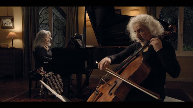 Es un concierto de música de cámara sin público que Martha Argerich ofrece, en su casa de Ginebra, con su pareja de hace mucho tiempo, la violonchelista Mischa Maisky. Es casi un ensayo, mostrando a los dos artistas tratando de sincronizarse con el primer acorde de Variaciones sobre un tema de La flauta magica, de Beethoven, una de las obras del programa. Es también un puñado de entrevistas breves, silenciosas pero intensas, con estos grandes silencios acompañados de una sonrisa enigmática tan propia del pianista argentino, juvenil, a pesar de los 80 años que celebró el 5 de junio. Están dirigidos por su hija, Annie Dutoit, cuyo padre es el director de orquesta suizo Charles Dutoit.