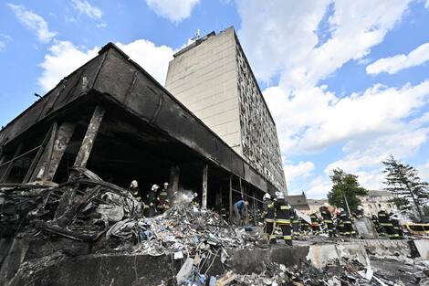 En Vinnytsia, una ciudad alejada del frente, al oeste de la capital, Kyiv, las fotos difundidas por el servicio de emergencia ucraniano mostraban decenas de cuerpos calcinados y un edificio de unas diez plantas destruido por la explosión y el consiguiente incendio.