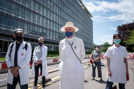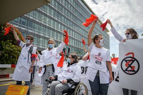 Alrededor de 200 profesionales de la salud se manifestaron frente a los edificios de la Organización Mundial de la Salud (OMS) en Ginebra el sábado para exigir que las autoridades de todos los países reconozcan y actúen para abordar los riesgos para la salud asociados con el cambio climático.