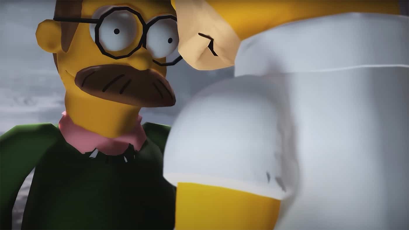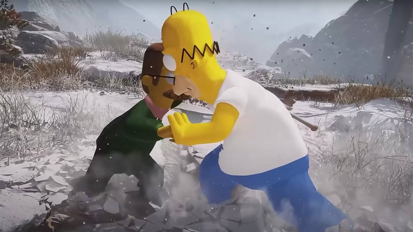 Y para los que conocéis un poco el juego, lo habéis adivinado, el combate extremadamente intenso entre Kratos y Stranger cobra una nueva dimensión con el intercambio de golpes entre Homer y Ned.