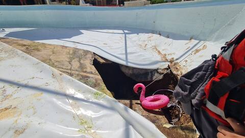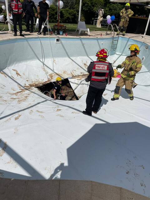 Un hombre murió y otro resultó herido cuando se formó un enorme cráter en el fondo de una piscina enterrada en un pueblo de Israel el miércoles.