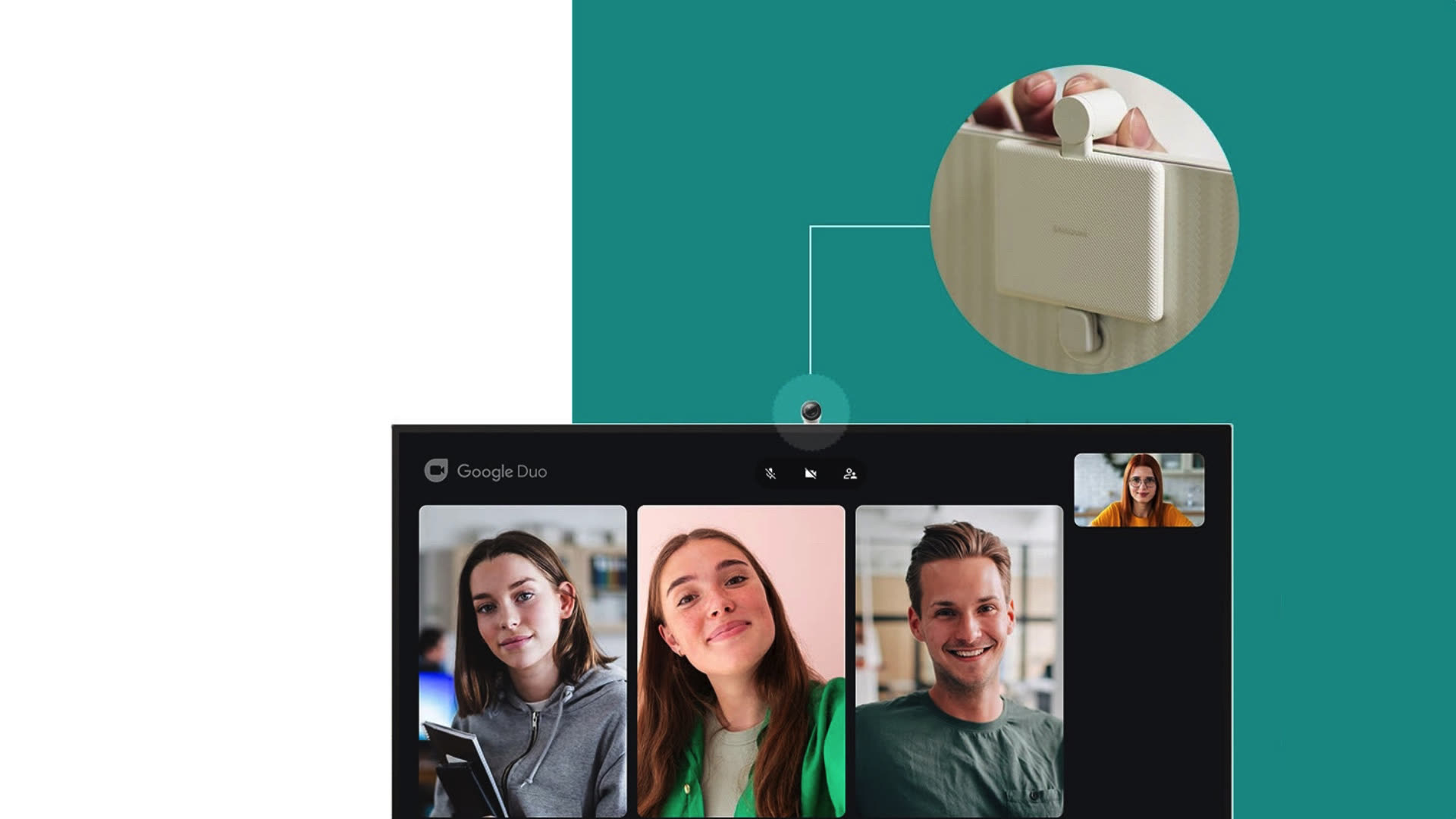 Aún más potente, un chip que funciona con Tizen está integrado en la pantalla, lo que le permite ofrecer ciertas funciones de Smart TV gracias al control remoto incorporado. Por ejemplo, puede reproducir la aplicación Apple TV, Netflix o YouTube sin tener que conectar una computadora. La parte del hub domótico también está en el software para poder apagar la luz o cambiar la temperatura directamente desde la pantalla. Finalmente, se incluyen los asistentes Bixby y Alexa, mientras que la pantalla es compatible con AirPlay 2.