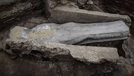 Esta investigación reveló una red de tubos de tierra-ladrillo que se usaban para calefacción en el siglo XIX. Los periodistas señalaron que en el centro apareció un sarcófago antropomórfico de plomo deformado por el peso de la tierra y las piedras.