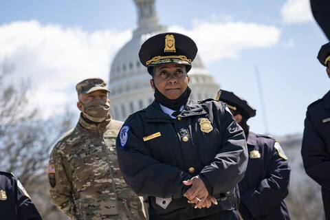 “En ese momento, el sospechoso salió del auto con un cuchillo en la mano”, dijo en una conferencia de prensa, “comenzó a caminar hacia los oficiales de policía del Capitolio” y luego “los oficiales le dispararon”.