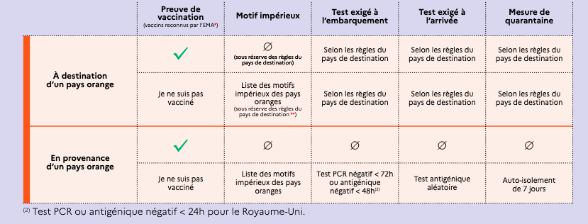 Inicialmente designado como verde, Estados Unidos ha cambiado a naranja desde el 12 de septiembre. Una situación que podría cambiar cuando las fronteras se abran el 1 de noviembre. Los requisitos impuestos por Francia no se aplicarán a las personas no vacunadas que viajen o regresen de los EE. UU. De todos modos, porque en el lado estadounidense, solo se aceptarán en el territorio personas completamente vacunadas. También debe tenerse en cuenta que después de este anuncio, Quai d’Orsay no ha actualizado sus consejos de viaje en este momento (a partir del 22/09/2021, nota del editor).